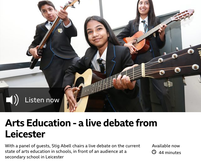 Listen to our Artistic Director talk about the value of Arts in Education on BBC 4’s Front Row programme: